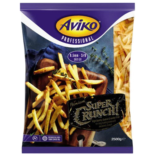 Looking for French Fries with skin on for a more homemade appeal? Aviko SuperCrunch Thin Cut 9.5mm 3/8 skin on is the choice for you! French Fries with skin on allow for your French fries to stay hotter for longer with our secret gluten free coating. Our French Fries with skin on are suitable for all as they are gluten free and suitable for vegans and vegetarians. What are you waiting for? Request your sample here.