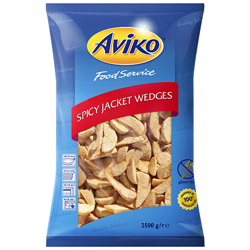 Potato Wedges Skin-on potatoes wedges with a light spicy coating, our spicy wedges are perfect for cooking from frozen either by combi steamer, pan-frying, basket frying or straight out of the oven. Meeting FSA salt guidelines and gluten-free you can trust Aviko to have the perfect wedges for your customers.