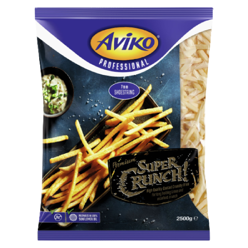 Using the highest quality potato varieties, which have a higher dry matter, keeps our fries crunchier for longer. Everyone can enjoy Aviko SuperCrunch Julienne fries as they are both gluten free and suitable for vegetarians. The thick SuperCrunch coating allows for our fries to be piping hot and have longer holding times, perfect for delivery! Our fries have a secret gluten free coating which allows for a super crunchy outside and a soft and fluffy interior!